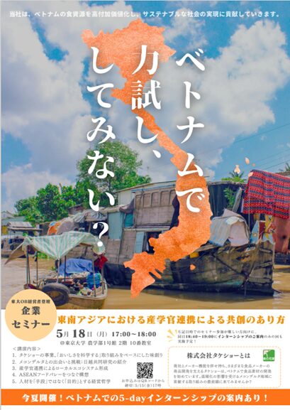 2026年5月18日(月)に、東京大学にて、東京大学生向けの企業セミナーを開催いたします。
